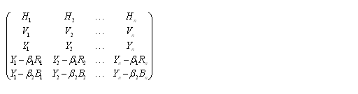 而現(xiàn)在的偽立體電視是由行向量H,幀向量V,亮度向量Y組成的三維線性空間。表達(dá)彩色信息的是由紅向量R,R',綠向量G,G',蘭向量B,B'組成的。共有H,V,Y,R,G,B,R',G',B'九個(gè)向量,通過不同的線性組合,組成的三維線性空間??捎靡韵伦笥叶€(gè)的矩陣來表示: