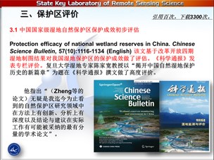 我們工作分兩部分,先是在2012年科學(xué)通報發(fā)過文章就是中國濕地監(jiān)測與評價,同時把我們以前做的工作和新的工作匯到一起,一起向各位前輩報告一下。