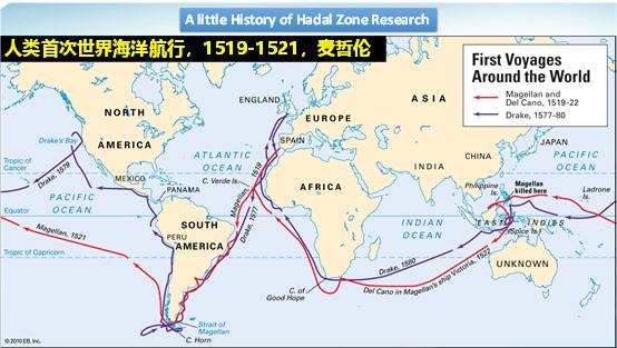那么世界海洋最深的點在什么地方呢?我們國家有鄭和下西洋,大約是公元1300年左右,鄭和航海最遠(yuǎn)的路線是印度洋。而麥哲倫航海的路線是全球航行,去了好幾個大洋。在1521年,麥哲倫曾用繩子梆住重塊、讓重塊在海中下沉,然后不斷放繩子的辦法測量海洋的深度。在馬里亞納海溝區(qū)域,麥哲倫的繩子沒有放到底,他認(rèn)為馬里亞納海溝最深,但不知具體數(shù)字。