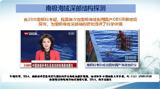 在南極地區(qū),我國有二處陸上地震臺站。在第28次南極科考時投放了海底地震儀,過了一年,在第29次南極科考船去那片海域回收時,因那片海域結(jié)冰,沒法回收。根據(jù)設(shè)計,海底地震儀最大留海時間為一年,大家都擔(dān)心失掉這兩臺儀器了。可喜的是,又過了一年那片海域已經(jīng)沒有冰了,在回收時,海底地震儀竟然浮到海面,這是在海底記錄時間最長的一次試驗。也為南極海域深部結(jié)構(gòu)研究提供了科學(xué)依據(jù)。