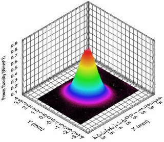 2013年10月,電子所實現(xiàn)了國內(nèi)首次DPAL銫激光輸出,激光輸出功率394mW,光光效率7.4%,實驗光路如圖2-9所示。對各項參數(shù)進(jìn)一步優(yōu)化后,所得輸出激光具有極好的光束質(zhì)量,光束功率密度分布如圖2-10所示。激光器光束質(zhì)量M2因子接近1。實驗證明了DPAL在光束質(zhì)量方面的潛力是極大的。