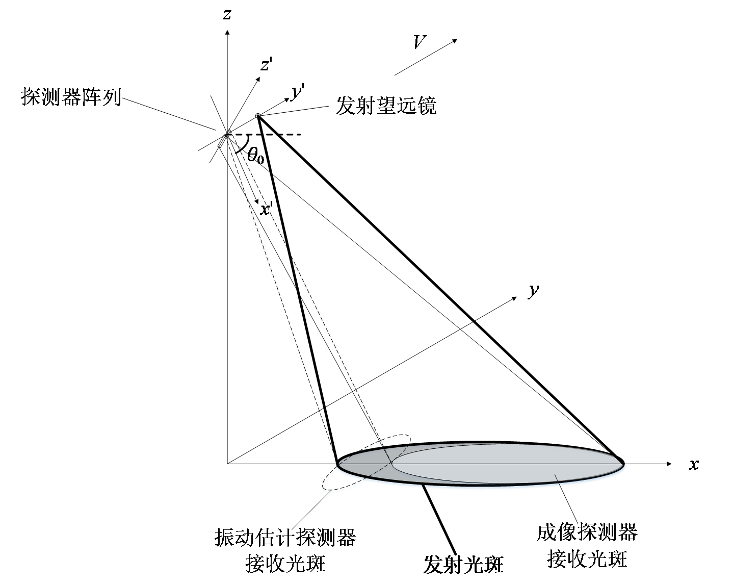 圖3 機(jī)載SAL發(fā)射和接收視場/運(yùn)補(bǔ)和成像探測器觀測幾何關(guān)系