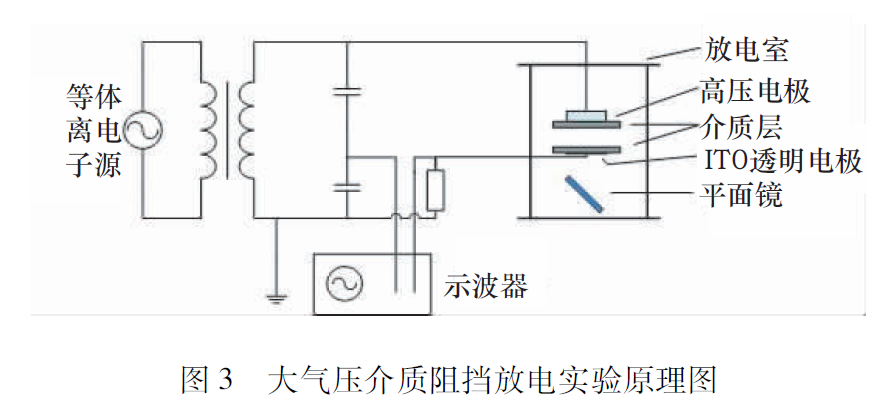 我們這里研究的大氣壓介質(zhì)阻擋放電和剛才講的非線性動力學到底有什么關系呢?圖3是華南理工大學的放電實驗原理圖。從電路的角度來看,這個實驗系統(tǒng)有一個交流電源,這個電源連接到放電室中,放電室里有電極和阻擋介質(zhì),在實驗中我們可以直接測量電源電壓和放電電流。